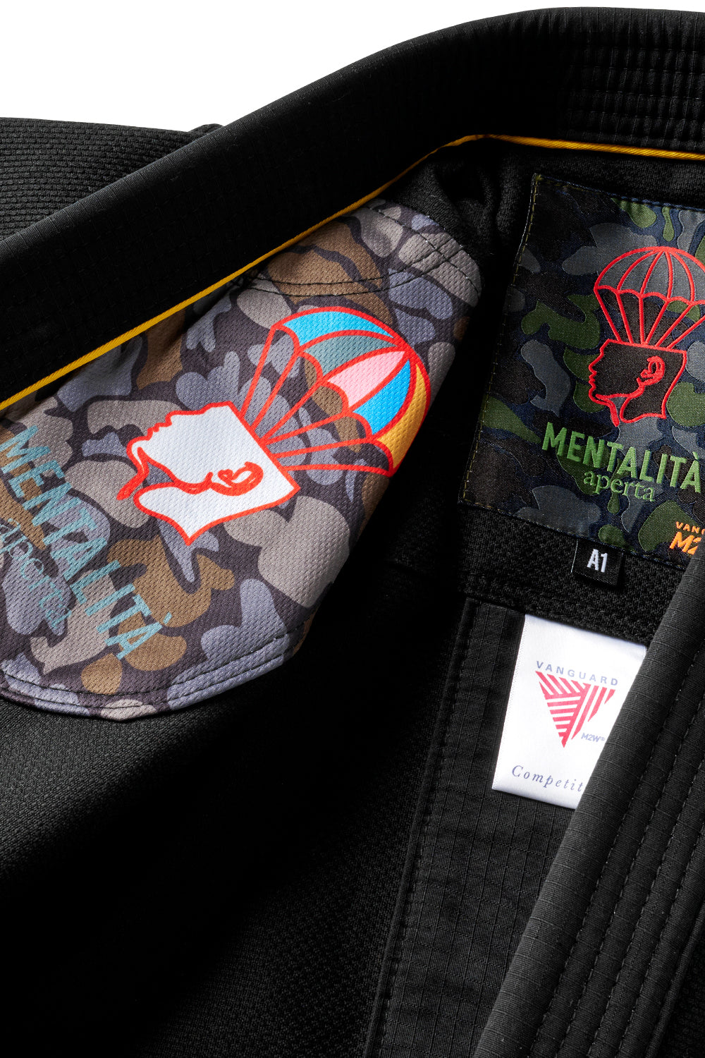 The Mentalità Aperta Kimono now available in Black with tonal detail embroidery. Based on our signature Opus I platform and features a 3-piece tailored multi-weight pearl weave jacket with fully-taped seams, and an extra sturdy collar to minimize gripping opportunities for your opponent. The lightweight, ultra-durable pant features 5-piece engineered construction with a mix of 240gsm military-grade ripstop, a 380gsm pearl weave gusset, and an added layer seat patch for extra strength and comfort.